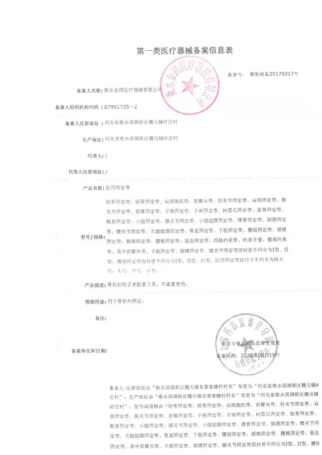 衡水金圆医疗器械有限公司,座落于风景秀丽的自然?;で馑希绷诰┚盘贰⑹瘡蕴?,西临106国道,地理位置优越,交利。公司研发各类护理器具、医疗保健用品,目前在衡水市医疗器械品种齐全,规模较大的厂家。 主要产品有:自发热运动护具、医用固定带、腹带、各种医用拐、多功能护理床、产床、高分子支具、骨折固定夹板、夹板、弹力网状绷带帽等。